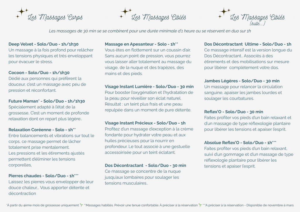 Laissez-vous choyer par notre équipe de praticiens qualifiés qui utilisent des produits de qualité pour vos moments de relaxation profonde.