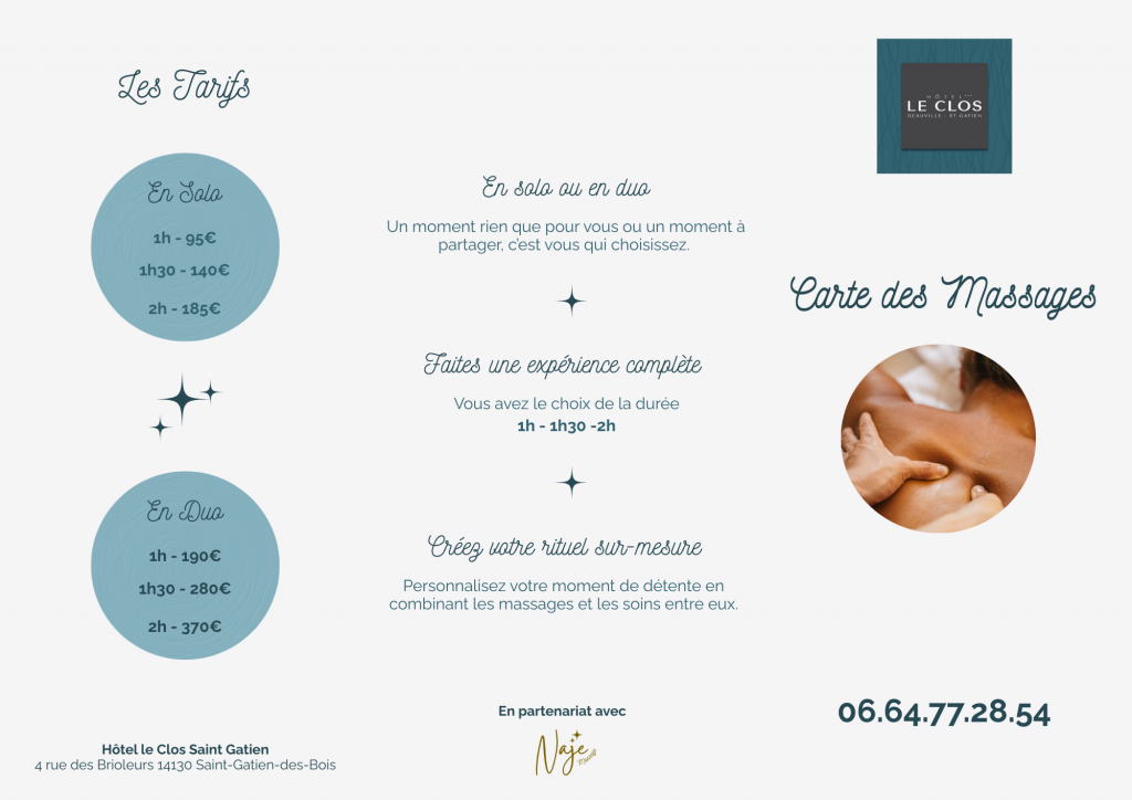 Toutes les prestations sont naturellement adaptées à vos besoins et vous permettent de profiter pleinement de votre séjour spa en Normandie.