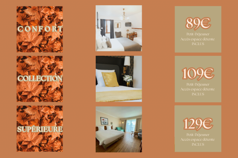 Que ce soit une escapade romantique, une célébration spéciale ou une simple pause bien-être, nos offres exclusives sont conçues pour vous offrir une expérience sur mesure. Offrez-vous le luxe de l’authenticité et du confort dans notre établissement, où chaque détail est pensé pour faire de votre séjour une parenthèse enchantée.