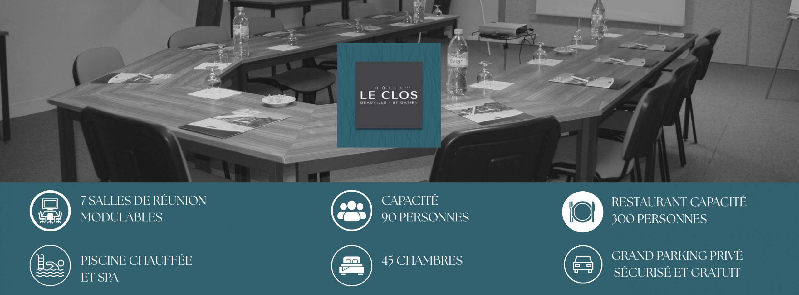 Situé à proximité de Trouville-sur-Mer et de Honfleur, au cœur du prestigieux Pays d’Auge, Hôtel Le Clos Saint-Gatien & Spa vous accueille dans un environnement calme et verdoyant, idéal pour l’organisation de vos séminaires d’entreprise en Normandie, réunions professionnelles, journées d’étude, formations…